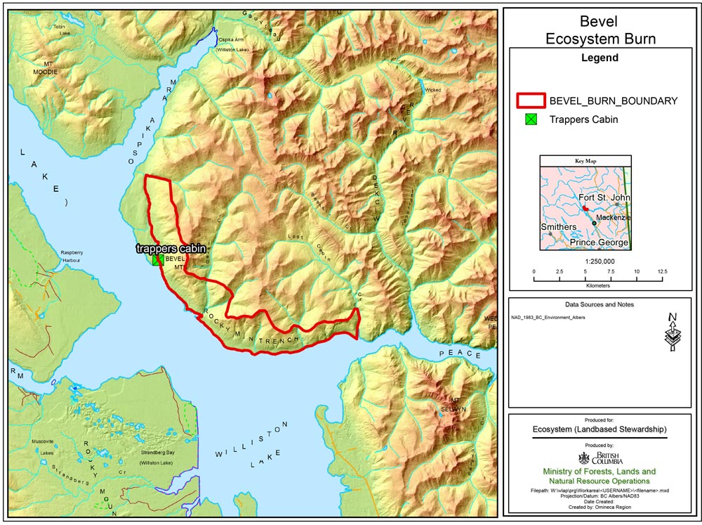 A prescribed burn using aerial ignition was conducted in 2014. Although the prescribed area is 8000 ha we expected that it may be possible to achieve half that amount in any one year. It rained the day prior to ignition resulting in a light burn in scattered locations throughout the area.
